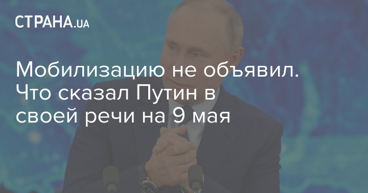 "В общем, вопреки прогнозам, Путин в своей речи на 9 Мая ни войну Украине не объявил, ни мобилизацию. Озвучил только одно решение - сказал, что подпишет сегодня указ о помощи семьям погибших в Украине военных", - комментирует ситуацию Telegram-канал "Политика страны".