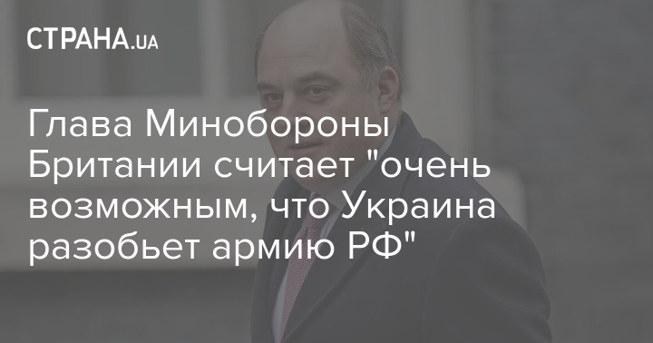 Глава Министерства обороны Великобритании Бен Уоллес считает вполне возможным, что "Украина разобьет российскую армию", призвав президента России Владимира Путина смириться с тем фактом, что Москва проиграла в долгосрочной перспективе.
