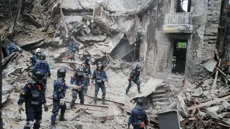 В Мариуполе оккупанты разбирают завалы в Драмтеатре. Фото: Телеграм