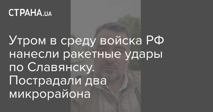 Утром в среду, 11 мая, войска РФ нанесли ракетные удары по Славянску Донецкой области. Попадание пришлось по двум микрорайонам города.