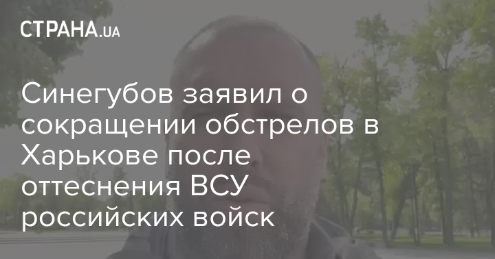 Синегубов заявил о сокращении обстрелов в Харькове после оттеснения ВСУ российских войск