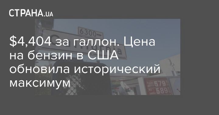 Цена за галлон (3,785 литра) в среднем по стране достигла $4,404 - это на 3 цента выше, чем накануне. В Калифорнии, где топливо всегда дороже, за галлон просят в среднем $5,85.