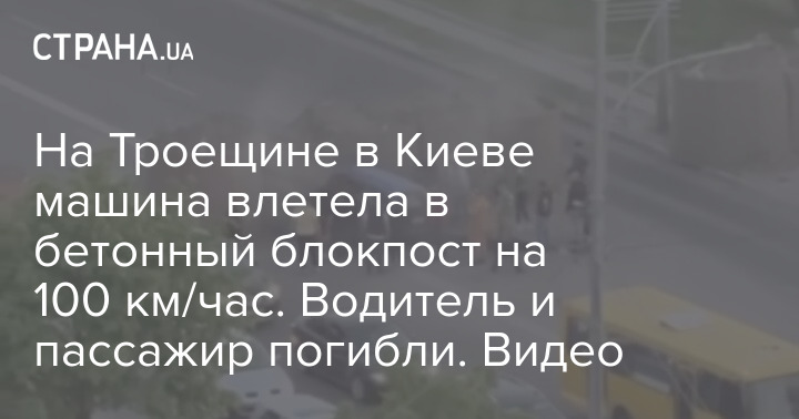На киевской Троещине машина со скоростью 100 километров в час врезалась в бетонные блоки на дороге.