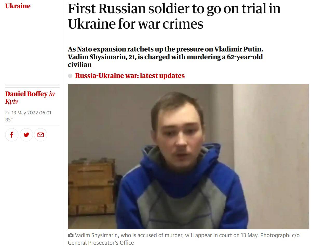 Это первое с начала вторжения России уголовное дело о военных преступлениях, пишет The Guardian.