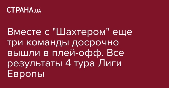 Вместе с "Шахтером" еще три команды досрочно вышли в плей-офф. Все результаты 4 тура Лиги Европы