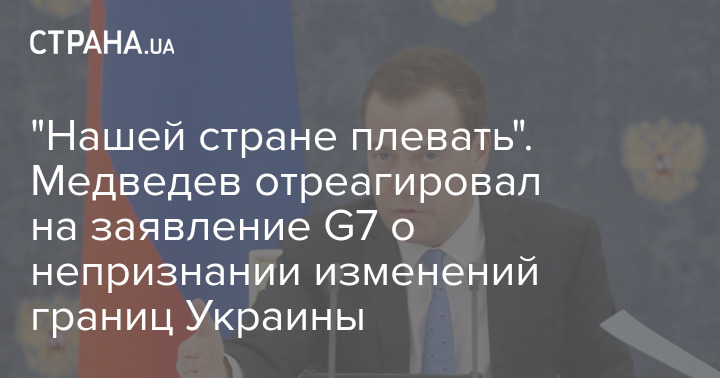 В ответ на это в своем Telegram-канале Медведев заявил, что "России плевать" на непризнание странами "Большой семерки" "новых границ".