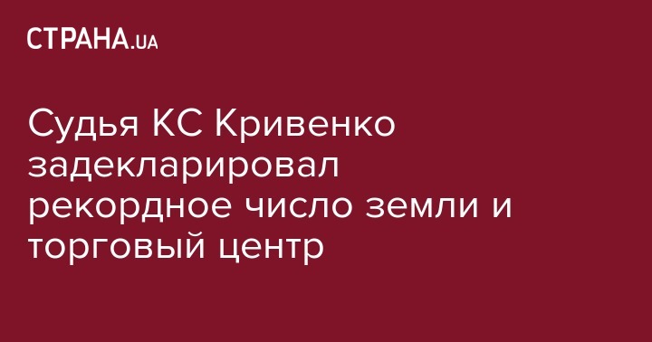 Рекордное число земельных участков задекларировал за 2015 год судья Конституционного Суда Виктор Кривенко совместно с женой: целых 13 общей площадью более 140 тысяч кв. метров. Об этом свидетельствует информация из Единого государственного реестра деклараций лиц, уполномоченных на исполнение функций государства или местного самоуправления.