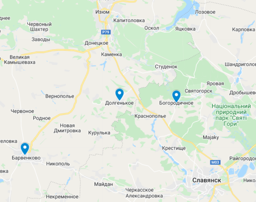 Также как и от Долгенького на Славянск практически прямая дорога - через села Долина, Краснополье и Крестыще.