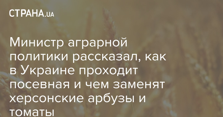 Министр аграрной политики рассказал, как в Украине проходит посевная и чем заменят херсонские арбузы и томаты