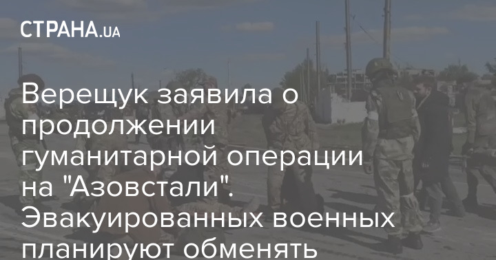 Верещук заявила о продолжении гуманитарной операции на "Азовстали". Эвакуированных военных планируют обменять