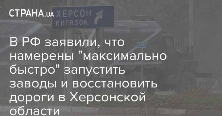 Вице-премьер России Марат Хуснуллин заявил, что в Херсонской области, которую российские военные оккупировали и переводят в рублевую зону, нужно максимально быстро запустить все заводы. Также, по словам Хуснуллина, в срочном порядке будут восстановлены все разрушенные дороги и мосты в регионе. Этим займется Россия, передает ТАСС.