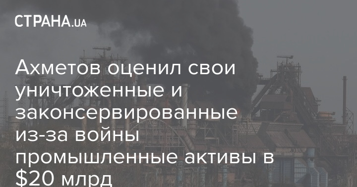Промышленные активы Рината Ахметова до войны, которую РФ развязала в Украине, оценивались в 20 миллиардов долларов. Из них только заводы в Мариуполе - в половину этой суммы. Об этом украинский бизнесмен сообщил  итальянскому телеканалу RAI.