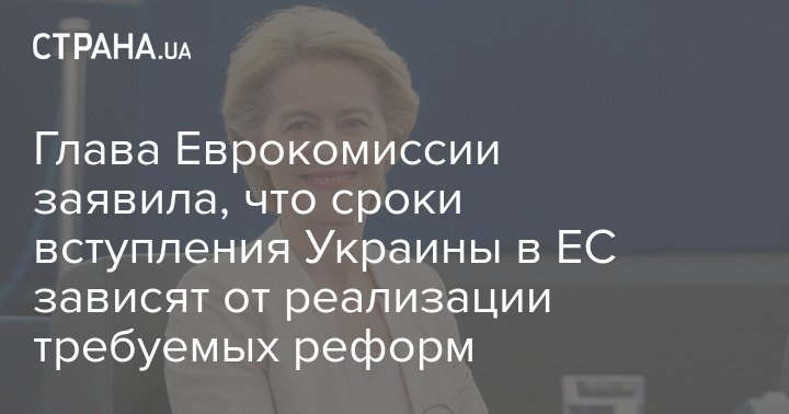 Глава Еврокомиссии Урсула фон дер Ляйен высказалась о перспективе вступления Украины в ЕС. По ее словам, многое в этом вопросе зависит от самой Украины и того, как она реализует нужные реформы.