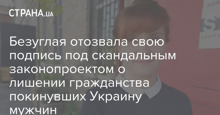 Народная депутат Марьяна Безуглая из фракции "Слуги народа" отозвала свою подпись под скандальным законопроектом №7381. В нем идет речь о лишении гражданства мужчин, выехавших за границу во время войны без уважительной причины и не вернувшихся в страну в течение 30 дней.
