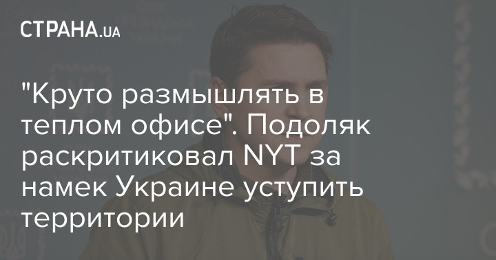 Советник главы Офиса президента Михаил Подоляк раскритиковал газету The New York Times за редакционную статью с призывом к Украине согласиться на территориальные уступки, чтобы остановить войну.
