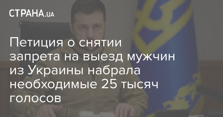 Петиция о снятии запрета на выезд военнообязанных мужчин из Украины набрала необходимые 25 тысяч голосов. Произошло это буквально за три дня.