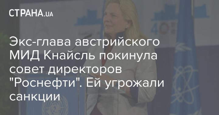 Экс-глава австрийского МИД Кнайсль покинула совет директоров "Роснефти". Ей угрожали санкции