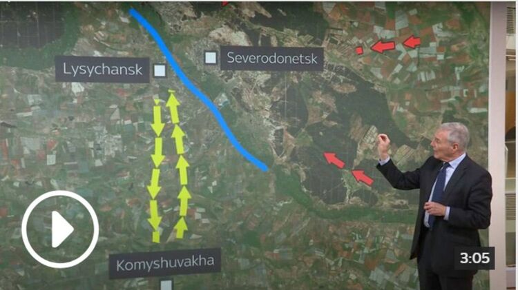 "Он окружен с трех сторон, и ключом к захвату Северодонецка является река, которая течет прямо к западу от города", — сказал он.