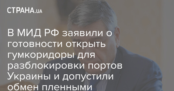 Россия готова предоставить гуманитарные коридоры для разблокировки украинских портов. Об этом заявил замглавы МИД России Андрей Руденко, пишут российские СМИ.