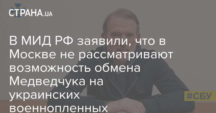 В Москве не рассматривают возможность обмена задержанного Службой безопасности Украины политика Виктора Медведчука на украинских военнопленных. Об этом заявил замглавы МИД РФ Андрей Руденко, передает "РИА Новости".