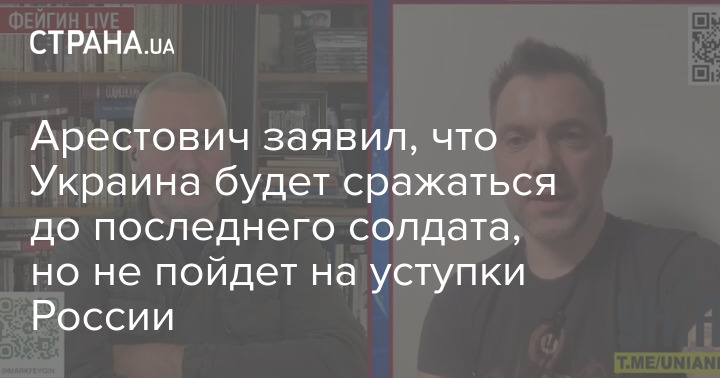 Арестович заявил, что Украина будет сражаться до последнего солдата, но не пойдет на уступки России