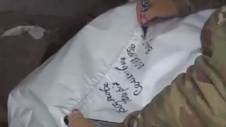 В Лисичанске тела хоронят в братских могилах в подписанных мешках. Скриншот из видео