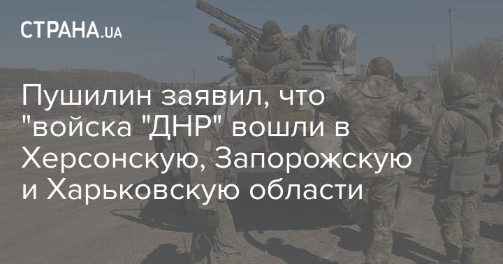 "Глава "ДНР" Денис Пушилин заявил, что "армия "ДНР" уже вошла в Херсонскую, Запорожскую и Харьковскую области Украины. Об этом пишут российские СМИ.