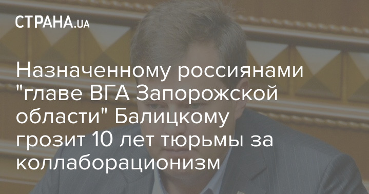 Назначенному россиянами "главе ВГА Запорожской области" Балицкому грозит 10 лет тюрьмы за коллаборационизм