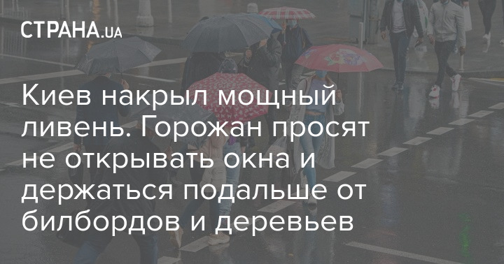 В четверг, 26 мая, в Киеве, как и прогнозировалось, идет сильный ливень с порывами ветра 15-20 м/с. Жителей города просят держать окна закрытыми, а на улице держаться подальше от рекламных щитов, линий электропередач и деревьев.