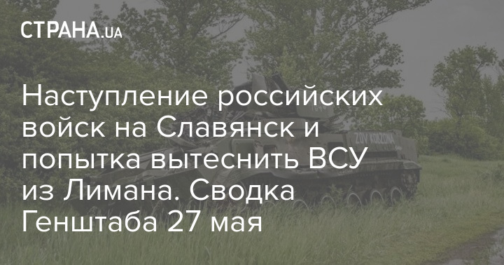 В Генеральном штабе Вооруженных сил Украины опубликовали оперативную сводку с фронта боевых действий по состоянию на 18:00 27 мая, в которой говорится, что противник пытается вытеснить подразделения ВСУ из Лимана (север Донецкой области) и развить наступление на Славянск.