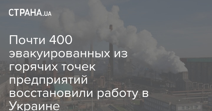 Почти 400 эвакуированных из горячих точек предприятий восстановили работу в Украине