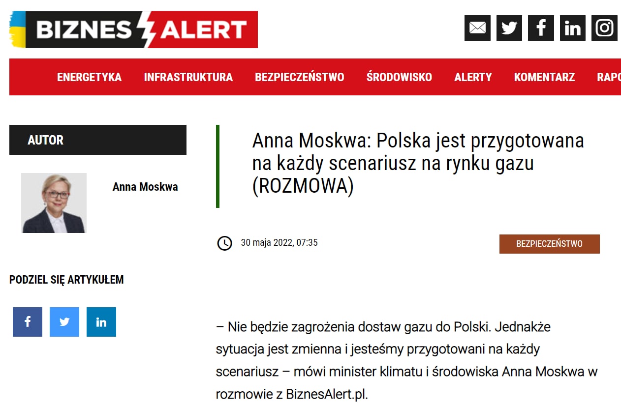 Министр добавила, что Варшава осуществляет поставки на регулярной основе, однако приоритетным считает внутренний рынок.