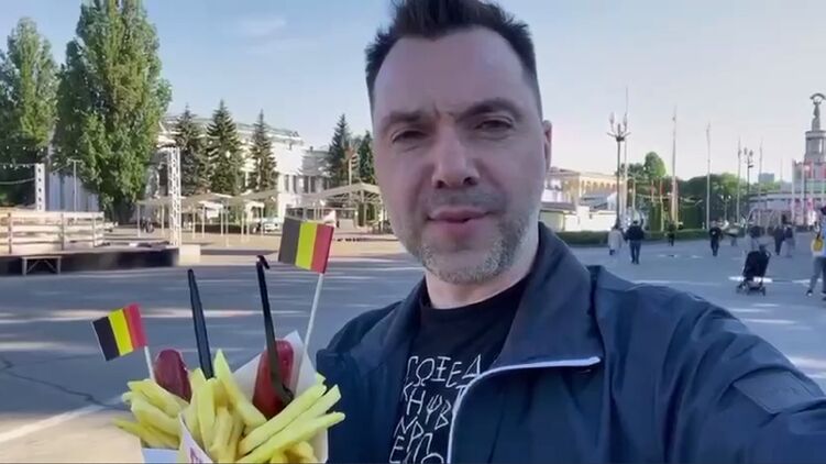 На вопрос журналиста "Страны" - в курсе ли он, что на картошке флаг не Германии, а Бельгии, - Арестович ответил: