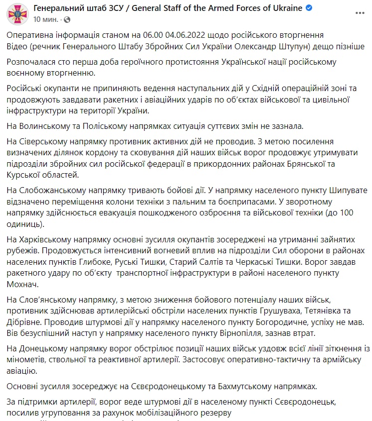Война в Украине продолжается уже 101-й день. "Страна" следит за происходящим в Украине 4 июня в обновляемом материале.