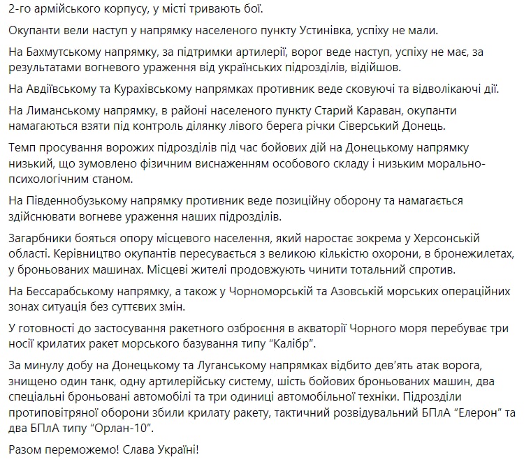 Об этом сообщается в утренней сводке Генштаба.