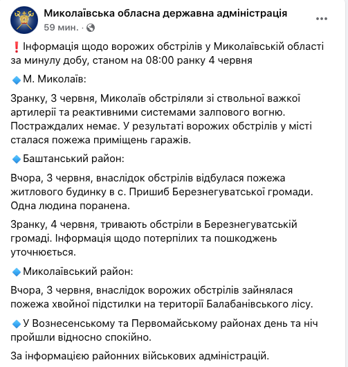 А 1 июня после обстрелов Николаева погибли два человека, еще двое ранены.