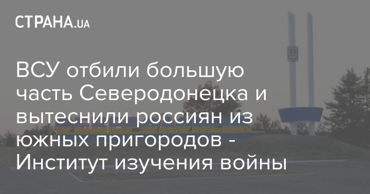 Институт изучения войны (США) сообщает, что украинские войска в Северодонецке за минувшие сутки "отбили большую часть города и вытеснили россиян из южных пригородов".