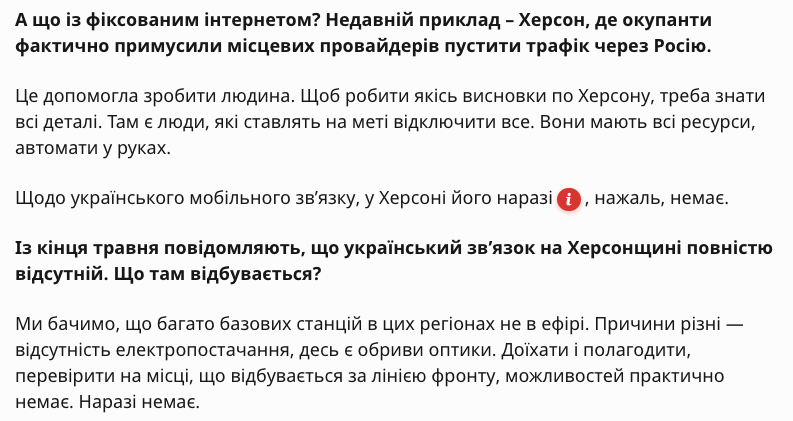 На днях интернет-провайдер Volia заявил о захвате офисов в Херсоне и прекращении работы в оккупированном регионе.