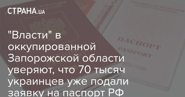 Заявление на получение российского гражданства подали более 70 тысяч жителей на территории Запорожской области, подконтрольной России, заявляет "военно-гражданская администрация" региона, назначенная россиянами.