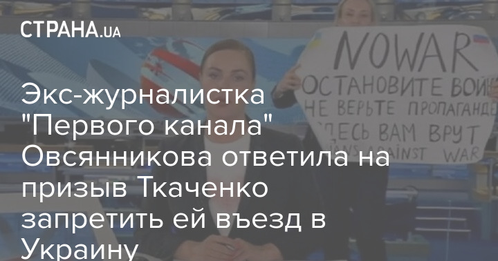 Бывшая журналистка российского "Первого канала" Марина Овсянникова ответила на призыв министра культуры и информационной политики Александра Ткаченко запретить ей въезд в Украину.