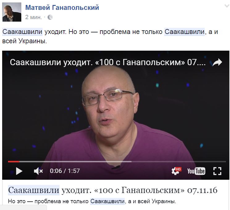 Известный украинский журналист Матвей Ганапольский считает, что уход Саакашвили со своего поста - проигрыш Украины.