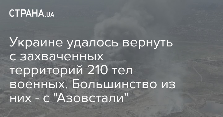 К сегодняшнему дню на подконтрольную Украине территорию удалось вернуть тела 210 наших военных, большинство из которых - с мариупольского комбината "Азовсталь".