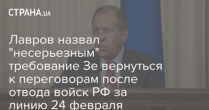 Министр иностранных дел России Сергей Лавров назвал "несерьёзным подходом" требование украинского президента Владимира Зеленского для начала переговоров с Москвой отвести войска РФ за линию 24 февраля.