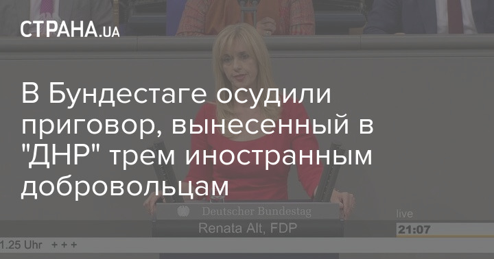 Председатель комитета немецкого Бундестага по правам человека и гуманитарной помощи Рената Альт осудила приговор, вынесенный в "ДНР" трем иностранным добровольцам.