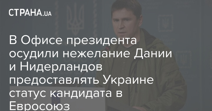В Офисе президента осудили Данию и Нидерланды за противодействие вступлению Украины в ЕС