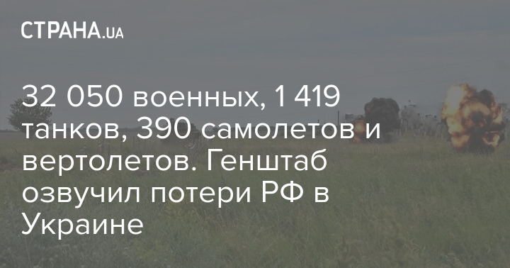 32 050 военных, 1 419 танков, 390 самолетов и вертолетов. Генштаб озвучил потери РФ в Украине