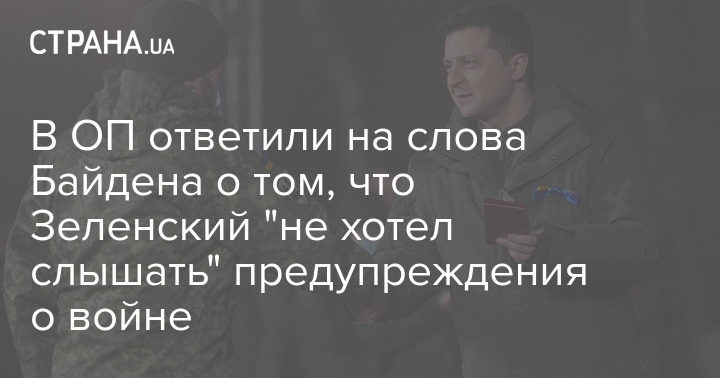 На Банковой ответили на заявление Джо Байдена о том, что Зеленский не хотел слышать предупреждений о скором вторжении России.