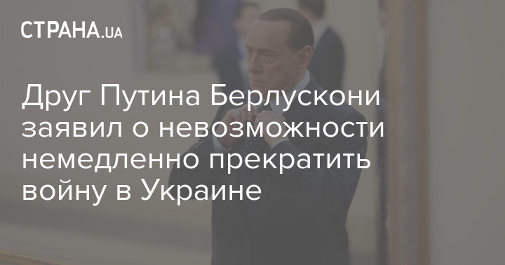 Бывший премьер-министр Италии Сильвио Берлускони, который ранее считался другом президента России Владимира Путина, заявил, что не видит возможности немедленного прекращения войны в Украине.