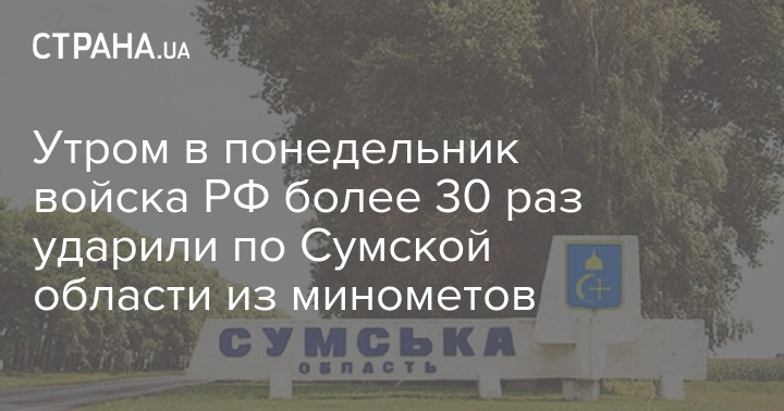 Утром в понедельник войска РФ более 30 раз ударили по Сумской области из минометов