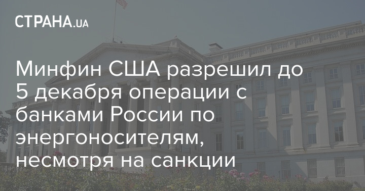 Министерство финансов США разрешило до 5 декабря операции с Банком России, ВЭБ, "Открытием", "Совкомбанком", Сбербанком, ВТБ и Альфа-банком по энергоносителям, несмотря на введенные против этих банков санкции.